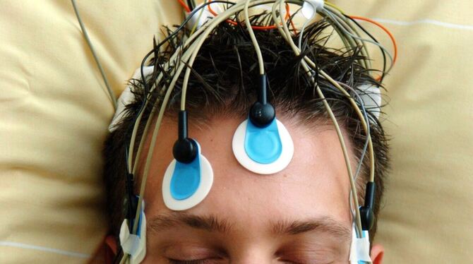 Total verkabelt: Im Schlaflabor werden Hirnströme, Augenbewegungen und Muskelspannungen der Patienten gemessen. FOTO: ROLF HAID/DPA