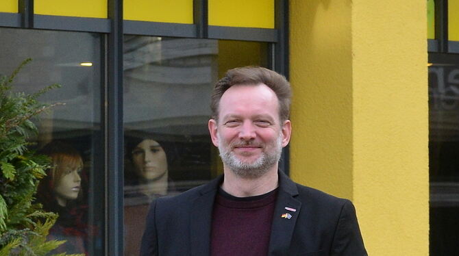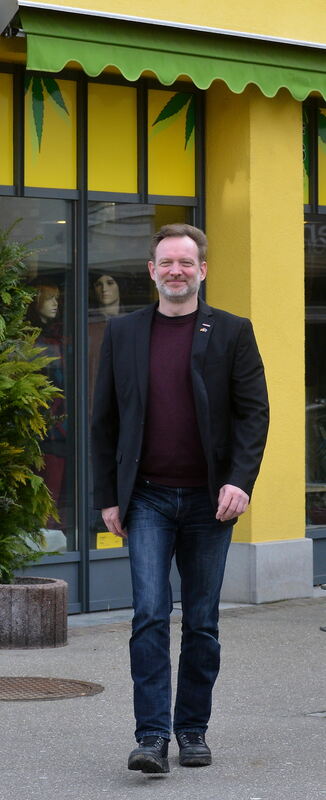 Andreas Zimmermann vorm Reutlinger Hanfhaus abgelichtet. FOTO: NIETHAMMER