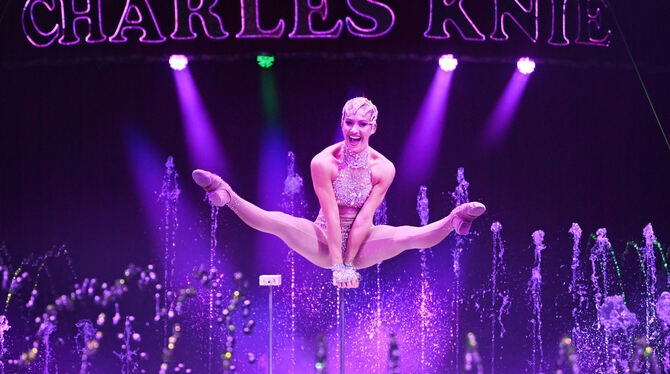 Beeindruckende Körperbeherrschung vor sprudelnder Kulisse: Der Zirkus Knie geht neue Wege.
