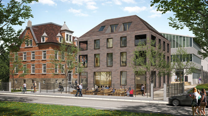 Der Investor plant zwei Neubauten, beide aus Holz: Zur Planie hin eventuell mit Restaurant, und zur Urbanstraße hin ein Wohnhaus.