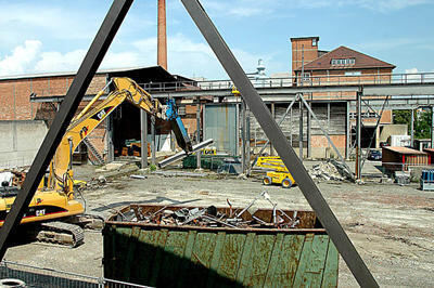 Abbrucharbeiten auf dem Danzer-Gelände an der Sondelfinger Straße. Auch das ehemalige Schälwerk, in dem in den vergangenen Jahren eine Go-Cart-Bahn betrieben wurde, soll abgerissen und durch ein Handelshaus ersetzt werden.