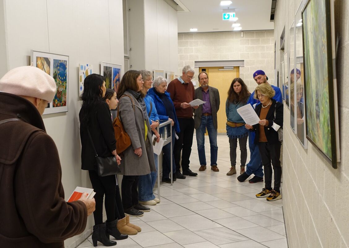 Solidarität durch Kunst: Die Ausstellung in der VHS Reutlingen zeigt Bilder deutscher und ukrainischer Studierender. FOTO: VHS REUTLINGEN