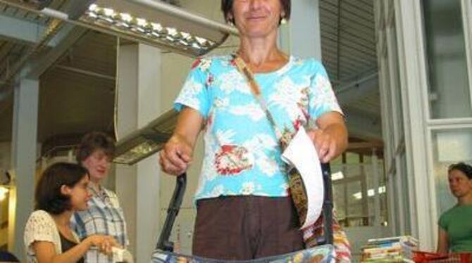Gabriela Hagenloch hat sich nochmals eine ganze »Ladung« Schmökerstoff gesichert und überlässt das Gewicht der zwei randvollen Taschen gerne dem Buggy.