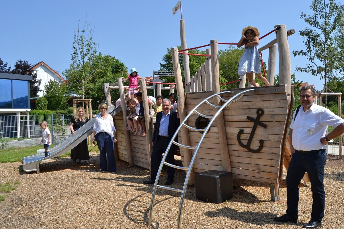Die Kita Alice-Haarburger-Straße ist gewissermaßen die »Schwester« des Kindergartens Gellertstraße. »Schon in der Planungsphase haben wir beschlossen, die räumliche Nähe und das bestehende pädagogische Konzept zu nutzen und beide Einrichtungen zur Verbundeinrichtung Kinderhaus Gellertstraße zusammenzuschließen«, resümierte der Rathaus-Chef im Gespräch mit Carmen Bauer, die den Verbund leitet, sowie den beiden Hausleiterinnen, Tanja Reiff für die Alice-Haarburger- und Sibylle Putsch für die Gellertstraße.
