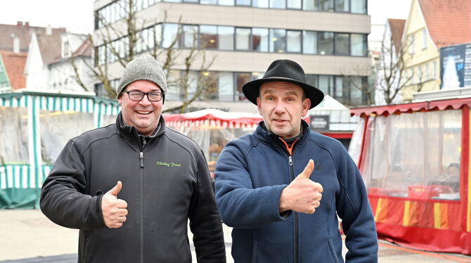 Packen’s optimistisch an: Martin Frech (links) und Frank Kuhn betreuen ab sofort den Wochenmarkt.