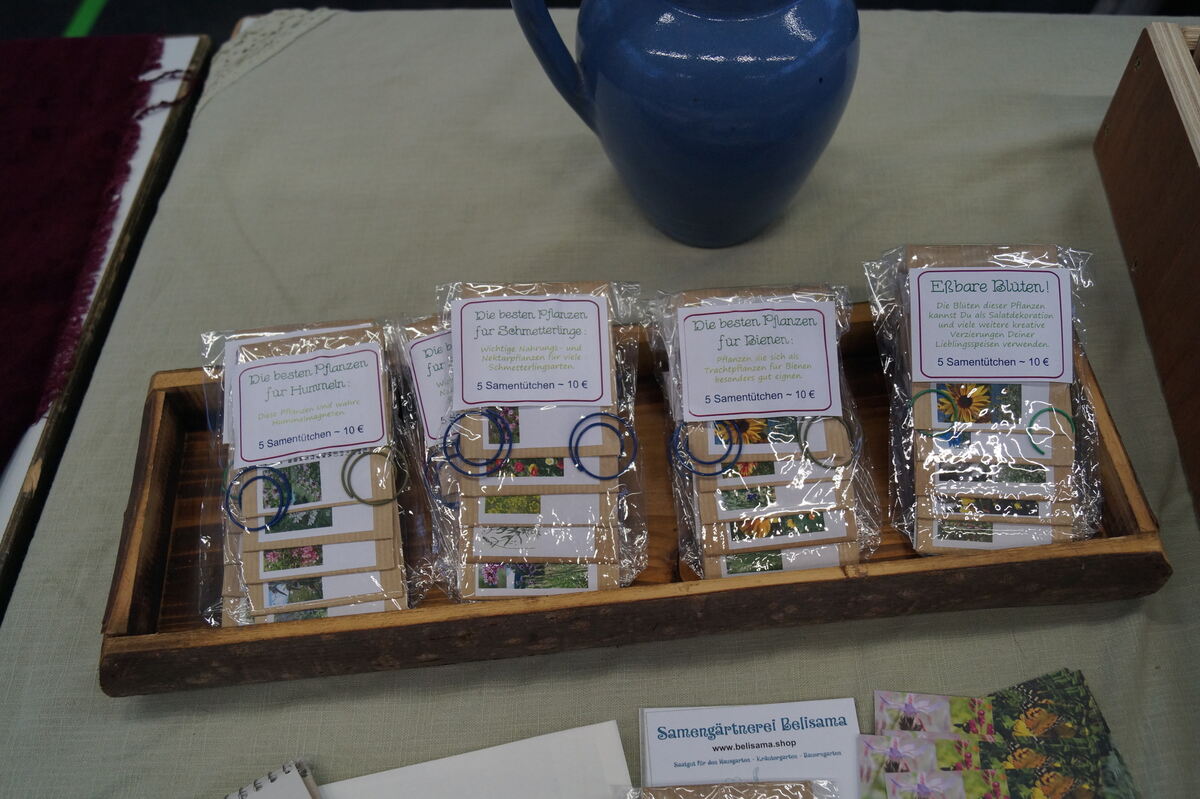 Gefragt sind Gemüse- und Kräutersämereien, die knackig, voller Geschmack und nicht alltäglich sind. Immer öfter werden aber auch Blühpflanzen gesucht, die etwa Wildbienen und Schmetterlingen Weide bieten. Wenn’s geht, gleich als Blühmischung, erzählt eine Ausstellerin, die artspezifische Fünferpäckchen an Blühpflanzen anbietet.