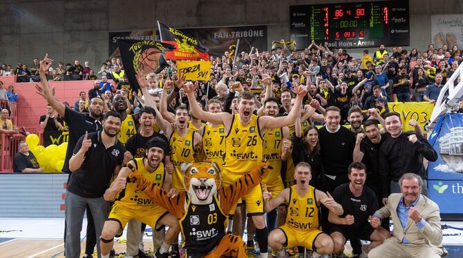 Das Team der Tigers Tübingen hat dem letzten Sieg in den Play-offs gegen Karlsruhe den Aufstieg in Liga eins direkt vor Augen.