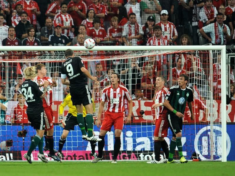 VfL-Stürmer Edin Dzeko (Nr. 9) köpft zum 1:1-Ausgleich ein.