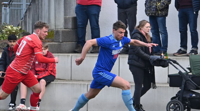 Manuel Lamparter (rechts) vom SV Zainingen enteilt Phil Hombach, der für die SG Reutlingen zwei Tore erzielte.