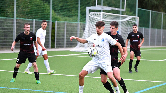 Der Torschütze zum 3:1, Qlirim Zekaj (vorne), behauptet gegen Deißlingens Felix Schaplewski den Ball. FOTO: PIETH