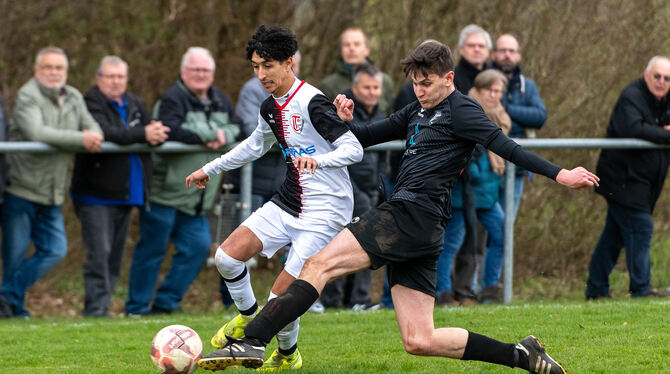 Das Duell im Tabellenkeller zwischen dem SV Wannweil und der SG Reutlingen II startete nach fünf Minuten mit einem Aufreger: SG-Torhüter Patrick Maier flog wegen einer Notbremse vom Platz. Dennoch gestaltete die SG das Spiel, während die Wannweiler auf Konter lauerten. Per Konter erzielte der SVW den 3:2-Siegtreffer durch Luca Beck (68. Minute). »Luca war heute der mit Abstand beste Spieler, er hat sich vom Ersatzspieler zum Leader entwickelt«, lobte Wannweils Trainer Ridvan Kaya. (GEA)