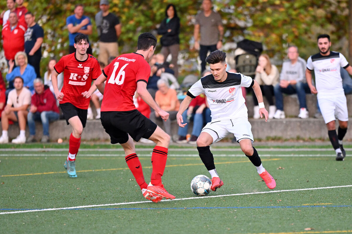 Berkay Eren (rechts) versucht es im Dribbling gegen Degerschlachts Innenverteidiger Alexander Hirscher. FOTO: PIETH