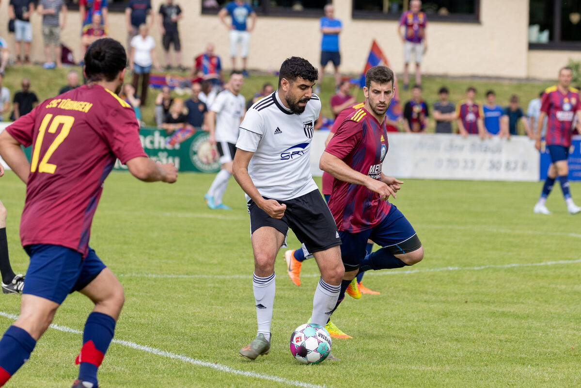 Im Spielverlauf neutralisierten sich beide Mannschaften über weite Strecken. Die Tübinger – mit starker Fan-Unterstützung angereist – hatten die erste dicke Chance. Über den Flügel kamen die Holderfeld-Kicker durch, die Flanke in die Mitte wurde dann aber abgefälscht – »leider haben wir den Abschluss nicht nur bei dieser Chance vergeigt«, sagte Annel. Bitter: Joschka Kralewski und Torjäger Moritz Grupp mussten wegen muskulärer Probleme das Feld vorzeitig verlassen.