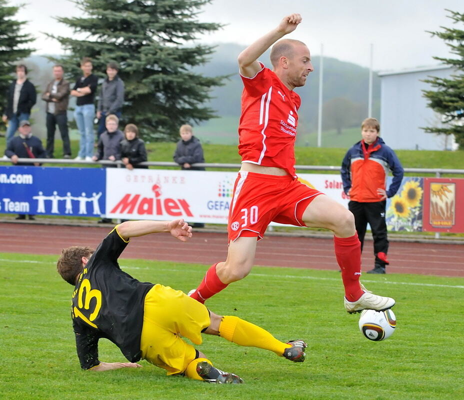 Düsseldorfs Olivier Caillas (in rot) scheiterte nicht nur einmal an Christian Werner.