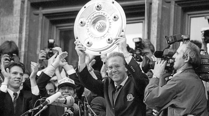 Der Franz, der kann’s: Nach fünf Titeln als Spieler (1969, 1972, 1973, 1974 Bayern; 1982 HSV) holte auch Trainer Beckenbauer die Schale. FOTO: IMAGO