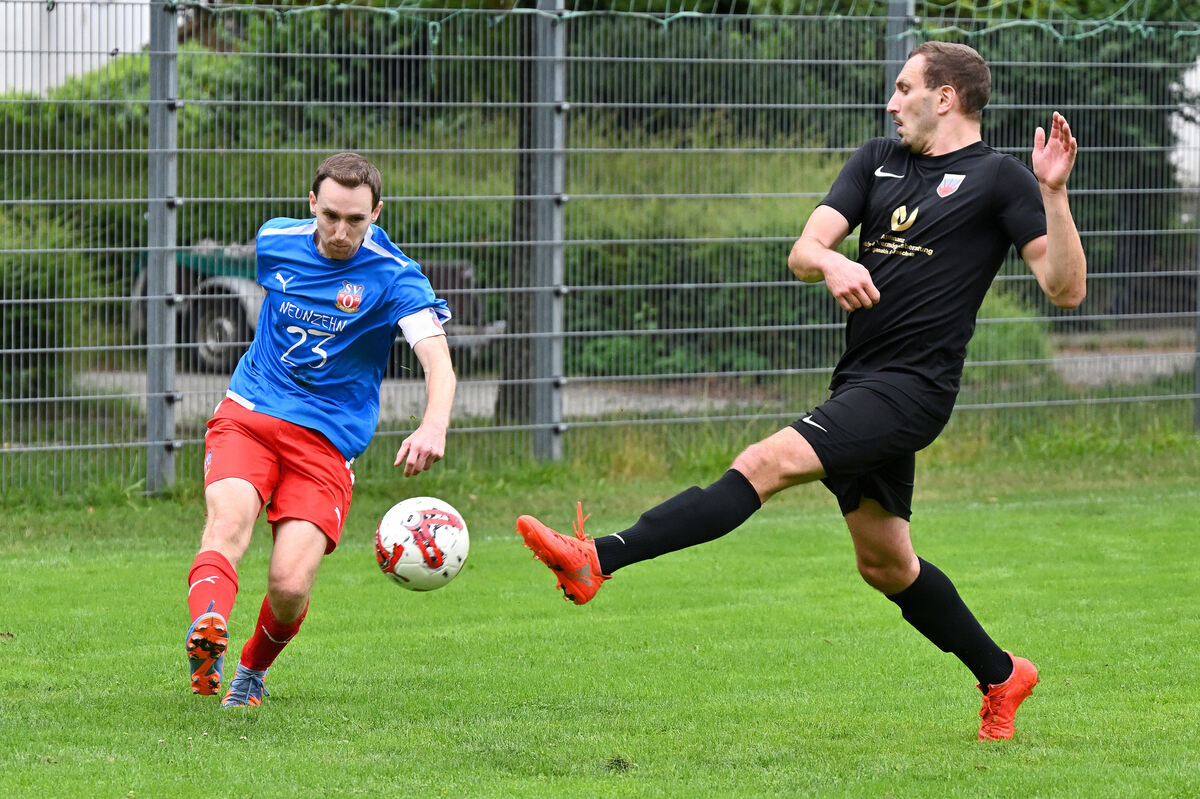 Spielertrainer Matthias Kunst (rechts) blockt einen Schuss.