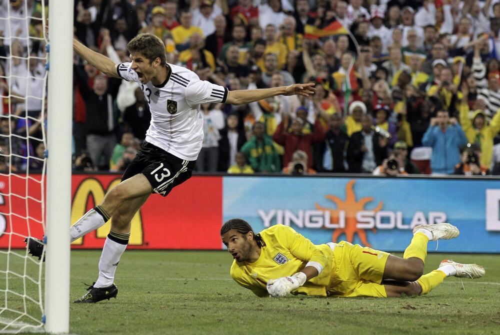 Der ist drin: Thomas Müller schießt das 4:1 gegen England.