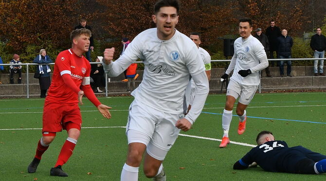 Young Boys Angreifer Qlirim Zekaj (vorne) bejubelt hier seinen Treffer in der 17.Minute zum 1:0. Ofterdingen-Kapitän Maurice Heim (hinten) ist frustriert. FOTO: MEYER