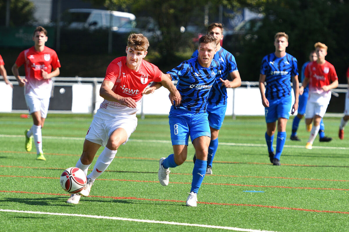 Lukas Falterbaum (links) von der TSG Tübingen versucht, Friedrichshafens Heiko Holzbaur im Laufduell loszuwerden. FOTO: PIETH