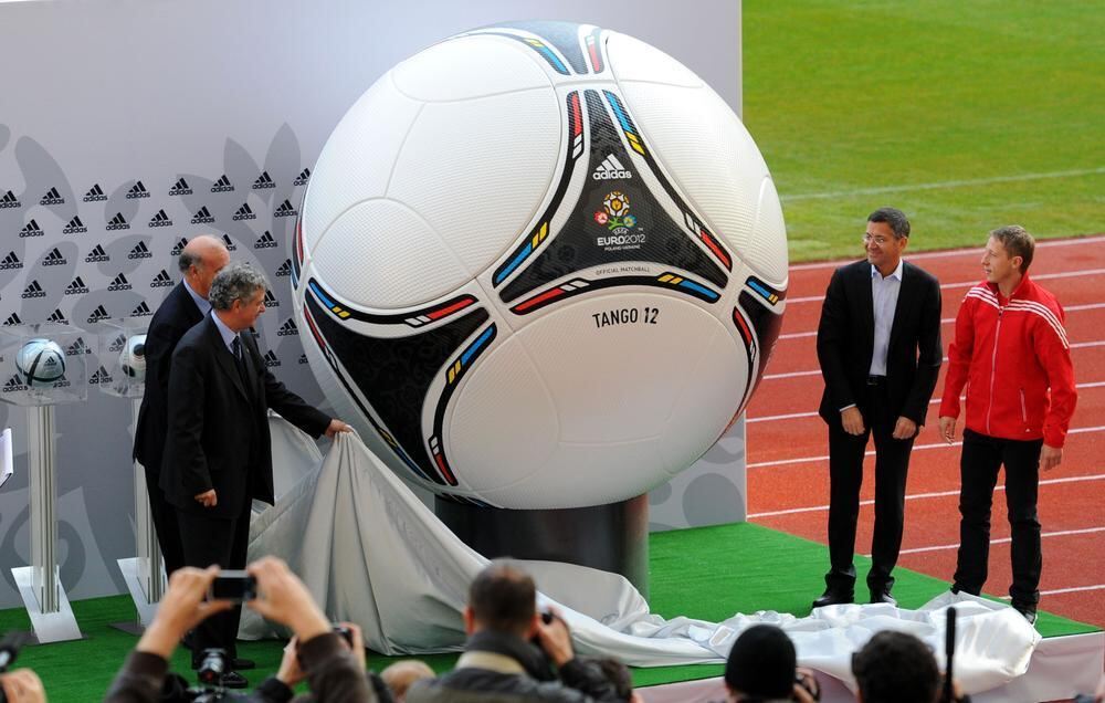 Der Fußball Tango 12 ganz groß - gespielt wird mit einer kleineren Variante.