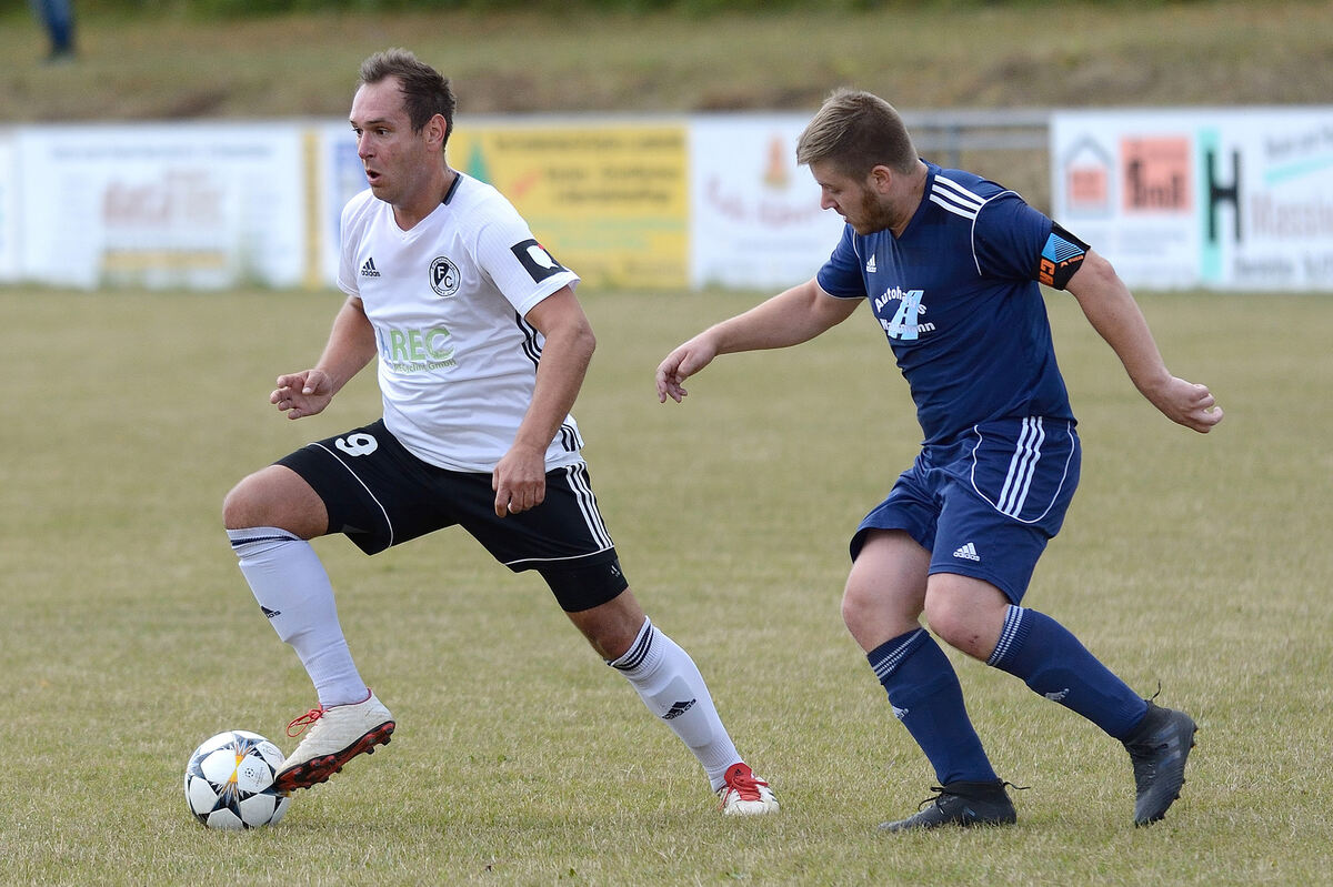 Kai Schenk (links) vom FC Engstingen im Zweikampf mit Manuel Heinrich von der SGM Oberstetten/Ödenwaldstetten. FOTO: PIETH/ARCHIV
