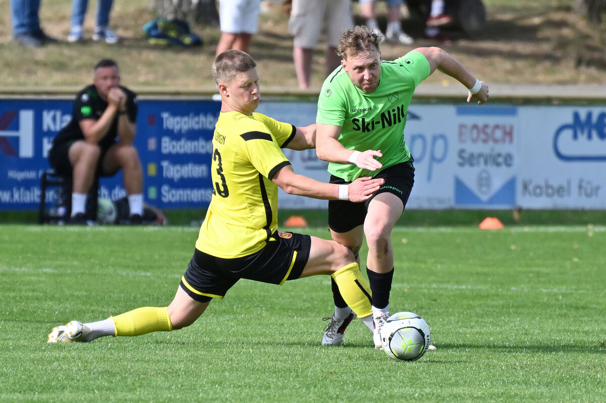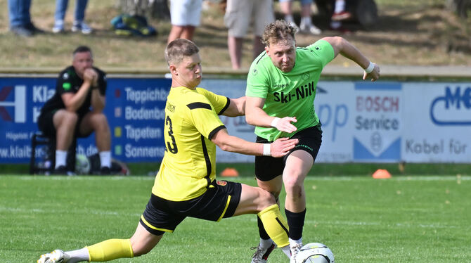 Marco Binder (rechts) vom SV Nehren umkurvt Gegenspieler Max Weipert.