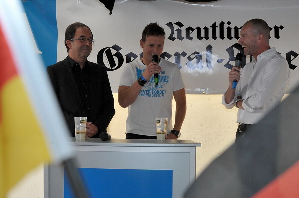Informativer Plausch: VfB Präsident Erwin Staudt, SSV-Spieler Andreas Rill und GEA Sportchef Frank Ernst.