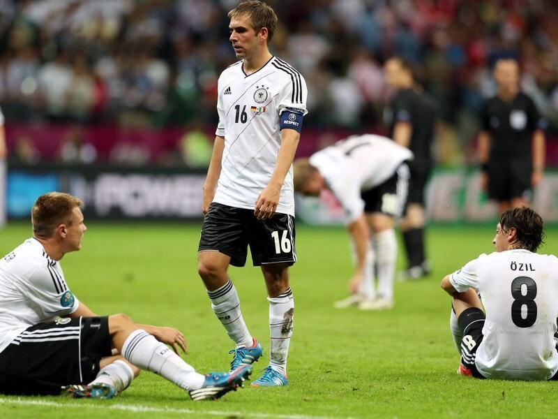 Bei den deutschen Nationalspielern Holger Badstuber, Philipp Lahm und Mesut Özil (l-r) herrschte Fassungslosigkeit. Foto: Oliver Weiken