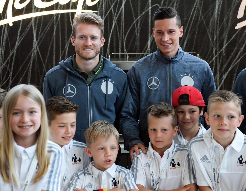 André Schürrle (links) und Julian Draxler mit jungen deutschen Fans. FOTO: DPA