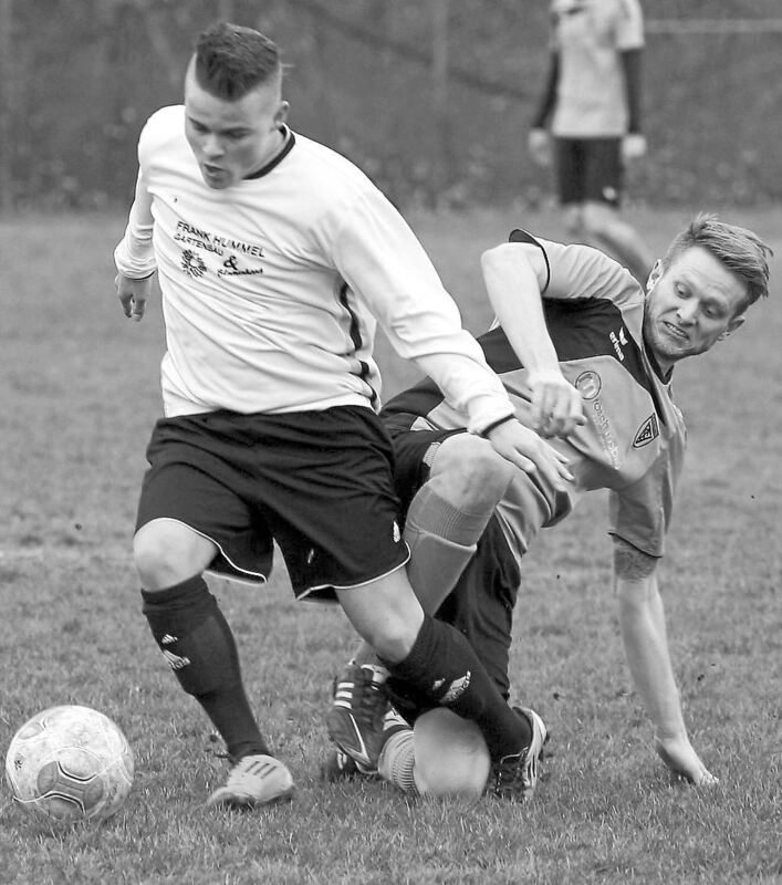 Erzielte in der Nachspielzeit das Siegtor zum 2:1 für den TSV Sondelfingen: Sven Fritz (links), der sich in dieser Szene gegen den Sickenhäuser Marcel Dress durchsetzt. FOTO: LANGER