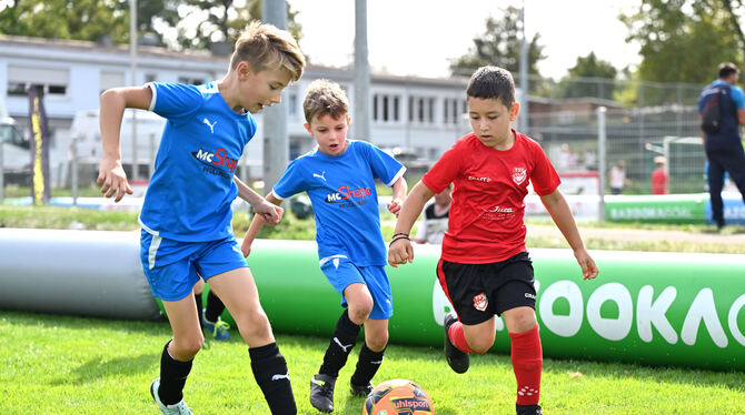 REUTLINGEN-BETZINGEN. Kleine Spielfelder, viele Ballkontakte, jede Menge Spaß: Der Württembergische Fußballverband (WFV) startete eine Kinderfußball-Tour. An drei Spielorten wurde gespielt, darunter auch im Bezirk Alb beim TSV Betzingen. Der Andrang war groß. Bei den F-Junioren waren 90 Teams auf 15 Spielfeldern im Einsatz. Bei den E-Junioren waren 26 Mannschaften am Start. Die E-Jugendlichen waren ganz heiß, sich auf kleineren Spielfeldern im »5 gegen 5« und ganz intensiv im »3 gegen 3« zu messen.