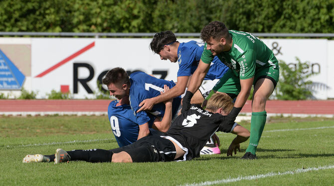 Landesligist SV Nehren ist mit einer 2:4 (0:3)-Niederlage gegen den Ligarivalen VfL Mühlheim ausgeschieden. Nach 24 Minuten schien das Spiel bereits zugunsten des VfL entschieden. Andreas Komforth (7.), Max Drössel (21.) und Maximilian Bell (24.) hatten die Gäste vor rund 80 Zuschauern in Nehren in Führung gebracht. Doch der SVN gab nicht auf. Nach dem Seitenwechsel läutete Daniel Frank in der 50. Minute vom Elfmeterpunkt mit dem 1:3 die Aufholjagd ein. Zehn Minuten später war das Spiel nach dem 2:3 durch Marco Binder wieder völlig offen. Doch dann machte Andreas Leibinger (81.) mit dem 2:4 den Sieg für die Gäste klar. (GEA)