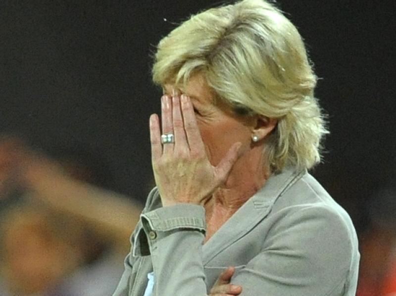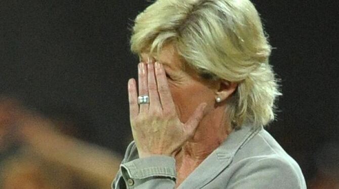 Bundestrainerin Silvia Neid verbirgt ihr Gesicht in ihren Händen.