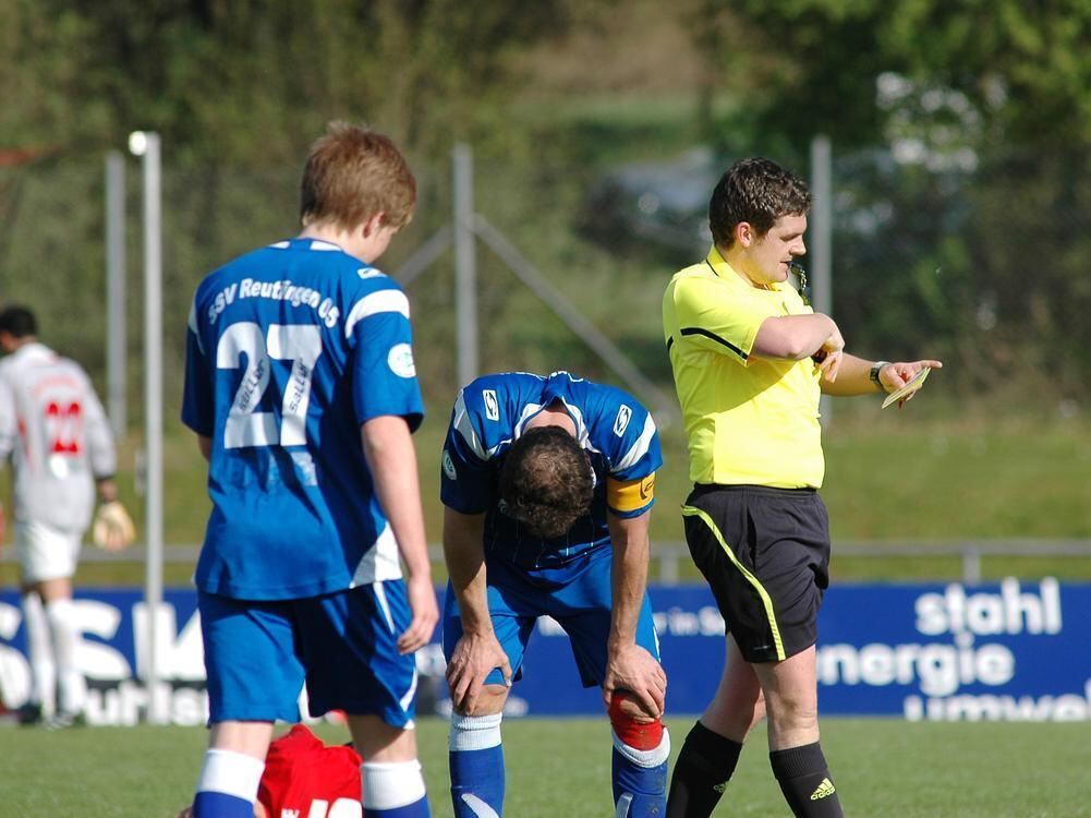 Manuel Waidmann (Mitte) ahnt das Unheil: Gleich zeigt ihm Referee David Paulat Gelb-Rot. FOTO: BAUR