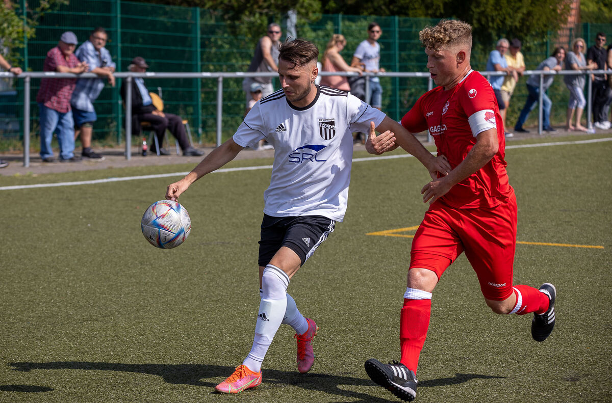 Gärtringens Christian Mijic (links) und Ofterdingens Kapitän Maurice Heim im Kampf um den Ball.