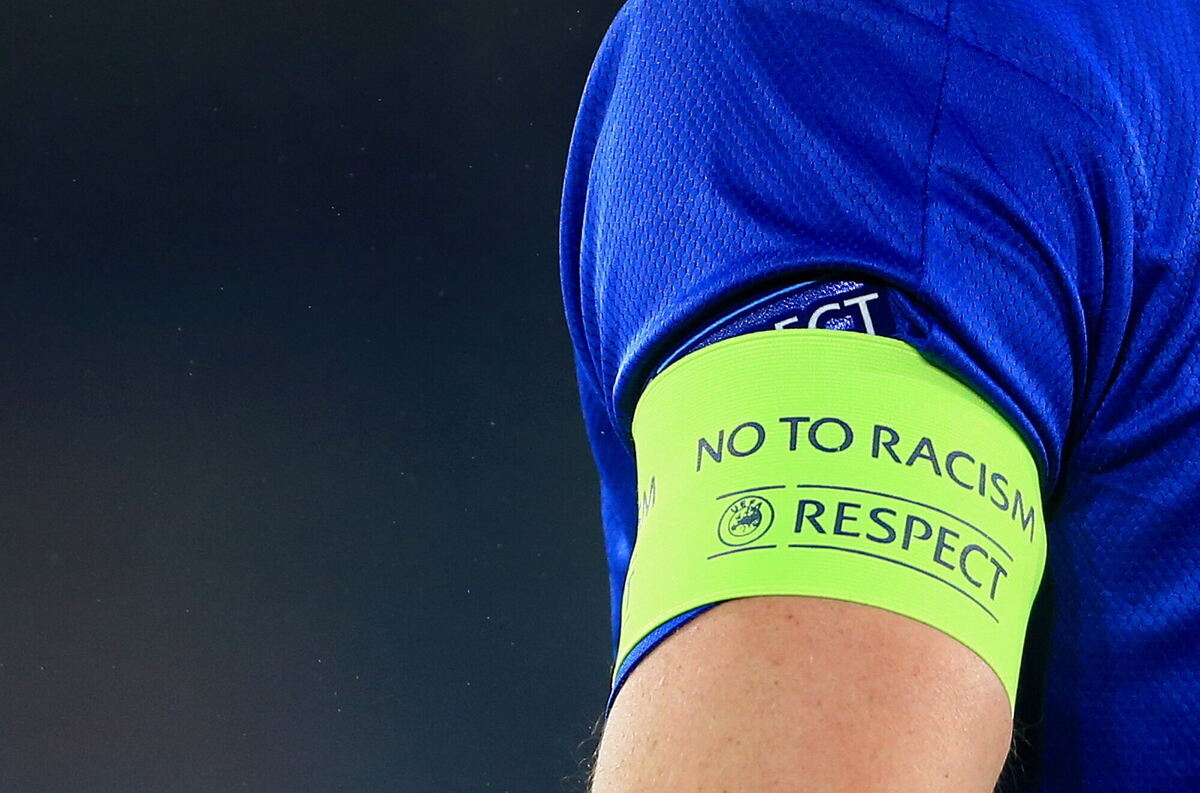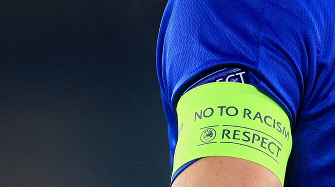 Kapitänsbinde mit Aufschrift »Respect - No To Racism«.