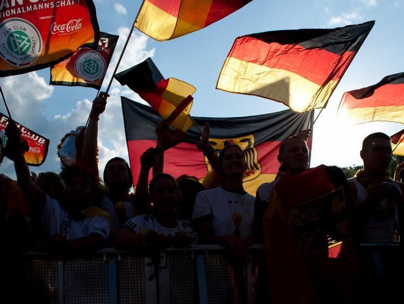 Fans der deutschen Mannschaft auf der Fanmeile am Brandenburger Tor in Berlin. Foto: Maurizio Gambarini