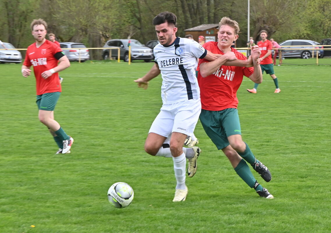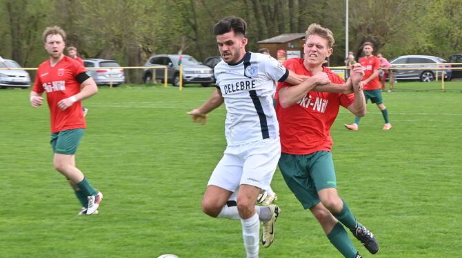 Verbissener Zweikampf zwischen Fatmir Karasalihovic (links) von den Young Boys Reutlingen und Nehrens Silas Rempfer.
