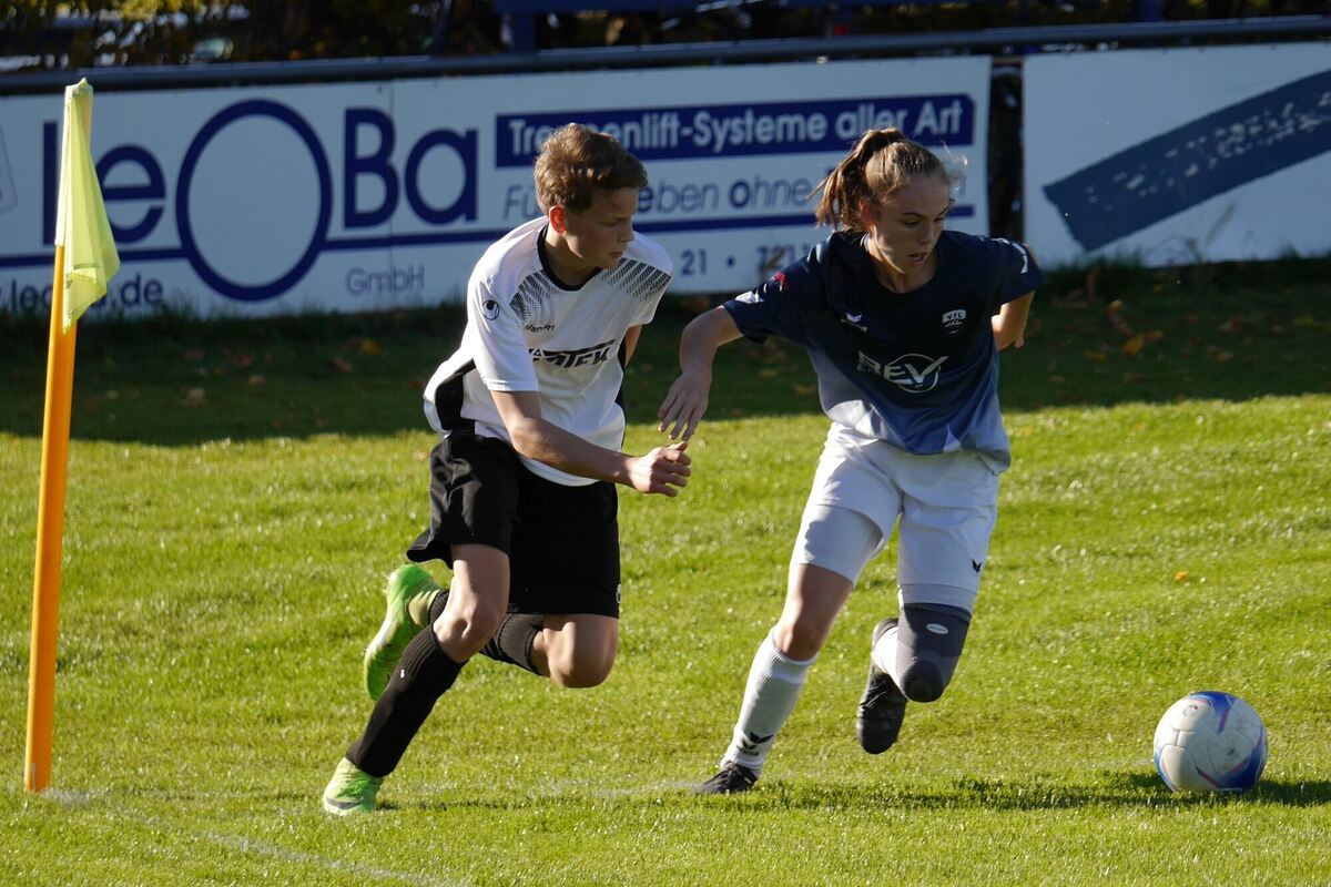 Leistungsträgerin bei den C-Junioren des VfL Pfullingen: Abwehrspielerin Alina Axtmann setzt sich gegen die Jungs durch. FOTO: PRIVAT