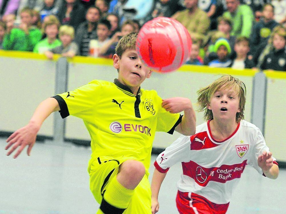 Manuel Reutter (rechts) schießt den VfB Stuttgart im Endspiel gegen die U12 von Borussia Dortmund zum 3:2-Sieg und damit zum Gewinner des Betzi-Cups. FOTO: PACHER