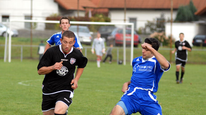 MÜNSINGEN. 13 Tore, eine famose Aufholjagd des Tabellenletzten, Siegtor des Spitzenreiters in der Nachspielzeit – in der Münsinger Kreisliga A sahen die Zuschauer in Mehrstetten ein verrücktes Spiel, ehe der 7:6-Erfolg des FC Römerstein feststand. »Wir haben uns zu früh zu sicher gefühlt«, sagte Römersteins Abteilungsleiter Michael Hettich. »Gegen die Teams aus der unteren Tabellenregion tun wir uns seit längerer Zeit immer schwer.« Mathis Kächele brachte Römerstein mit einem Hattrick mit 3:0 in Führung. Als Carlo Liotti in der 66. Minute das 6:3 erzielte, schied die Entscheidung gefallen zu sein. Doch die bereits zum Abstieg verurteilten Mehrstettener bäumten sich auf und stellten bis zur 84. Minute den 6:6-Ausgleich her. In der vierten Nachspielminute trat einmal mehr der fünffache Torschütze Kächele in Erscheinung – 7:6. Der 19 Jahre alte Kächele sei technisch stark und verfüge über einen »linken Hammer«, beschreibt Hettich die Vorzüge des Stürmers, der mit 37 Erfolgen die A-Liga-Torschützenliste anführt.