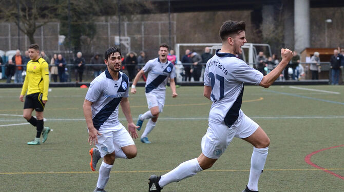 3:2-Torschütze Fatmir Karasalihovic (rechts) jubelt, Metecan Ünal feiert mit ihm die erneute Führung. FOTO: PIETH