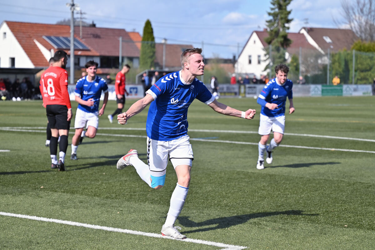 Verteidiger Sven Packert bejubelt den Treffer zum Pfullinger 2:0 gegen Neckarrems. Es war sein zweites Saisontor. FOTO: PIETH