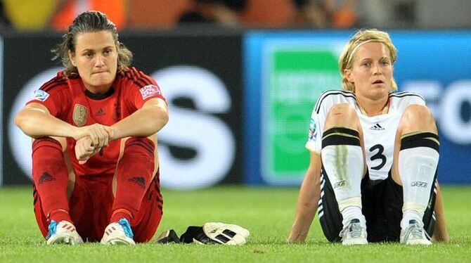 Sprachlos: Nadine Angerer (l.) und Saskia Bartusiak.
