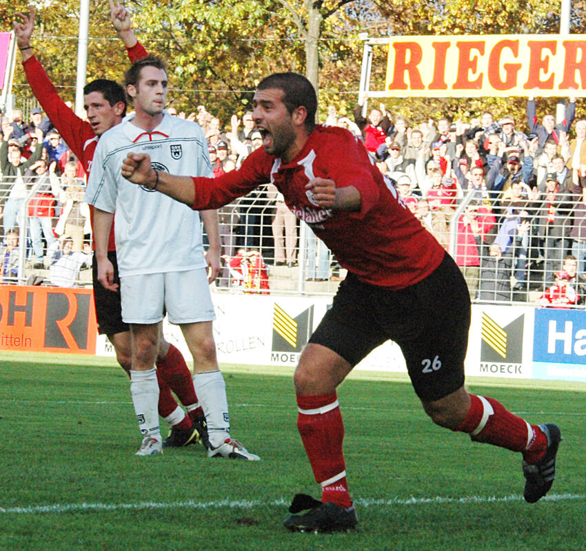 Ioannis Tsapakidis in Jubelpose. In der Saison 2005/06 wurde er mit dem SSV Reutlingen Oberliga-Meister.