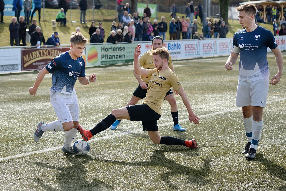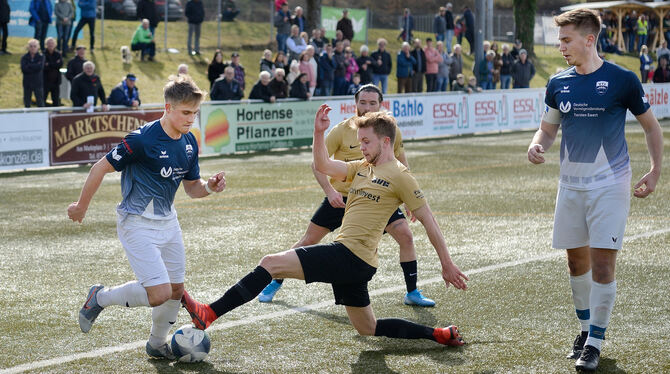 Hart umkämpftes Spiel: Kevin Haussmann vom VfL Pfullingen im Duell um den Ball mit Philipp Hörterich vom SV Fellbach. FOTO: PIETH