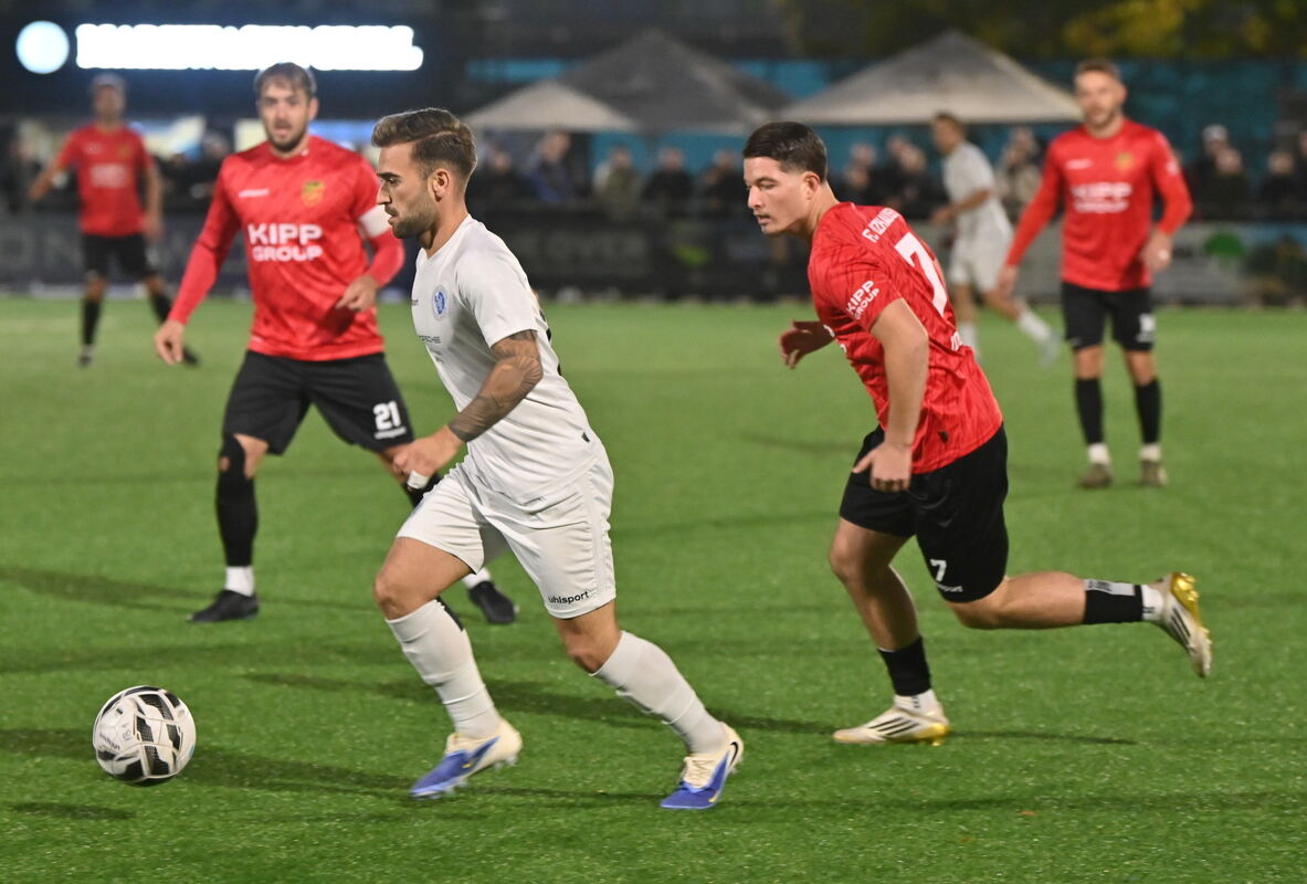 Gefühlt jeder Zweikampf, bis auf die Duelle im gegnerischen Strafraum, gingen an die Young Boys, die mit einer extremen Intensität agierten und hochkonzentriert auftraten. Mit zwei Mini-Ausnahmen. »Die beiden Gegentore haben wir uns wieder selber eingeschenkt«, sagte Trainer Grimminger. Holzhausens Goalgetter Janik Michel (151 Tore in den letzten 152 Spielen) war eigentlich über die gesamte Spieldauer unsichtbar. Doch zweimal war der 33-Jährige eben zur Stelle, wie er es in jeder Partie ist. Fünf Minuten vor der Pause bestrafte Michel eine Unachtsamkeit in der Reutlinger Defensive mit einem Foulelfmeter zum 1:1. In der 73. Minute vollendete der Routinier dann einen blitzschnellen Gäste-Konter zum zwischenzeitlichen 2:2.