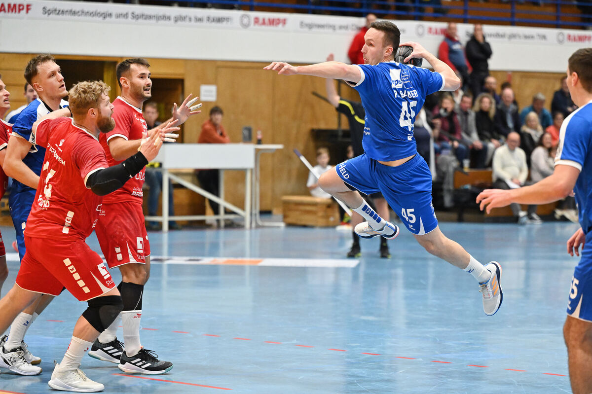 Patrick Bauer hebt ab und erzielt seinen vierten Treffer beim Heimsieg des TV Neuhausen. FOTO: PIETH
