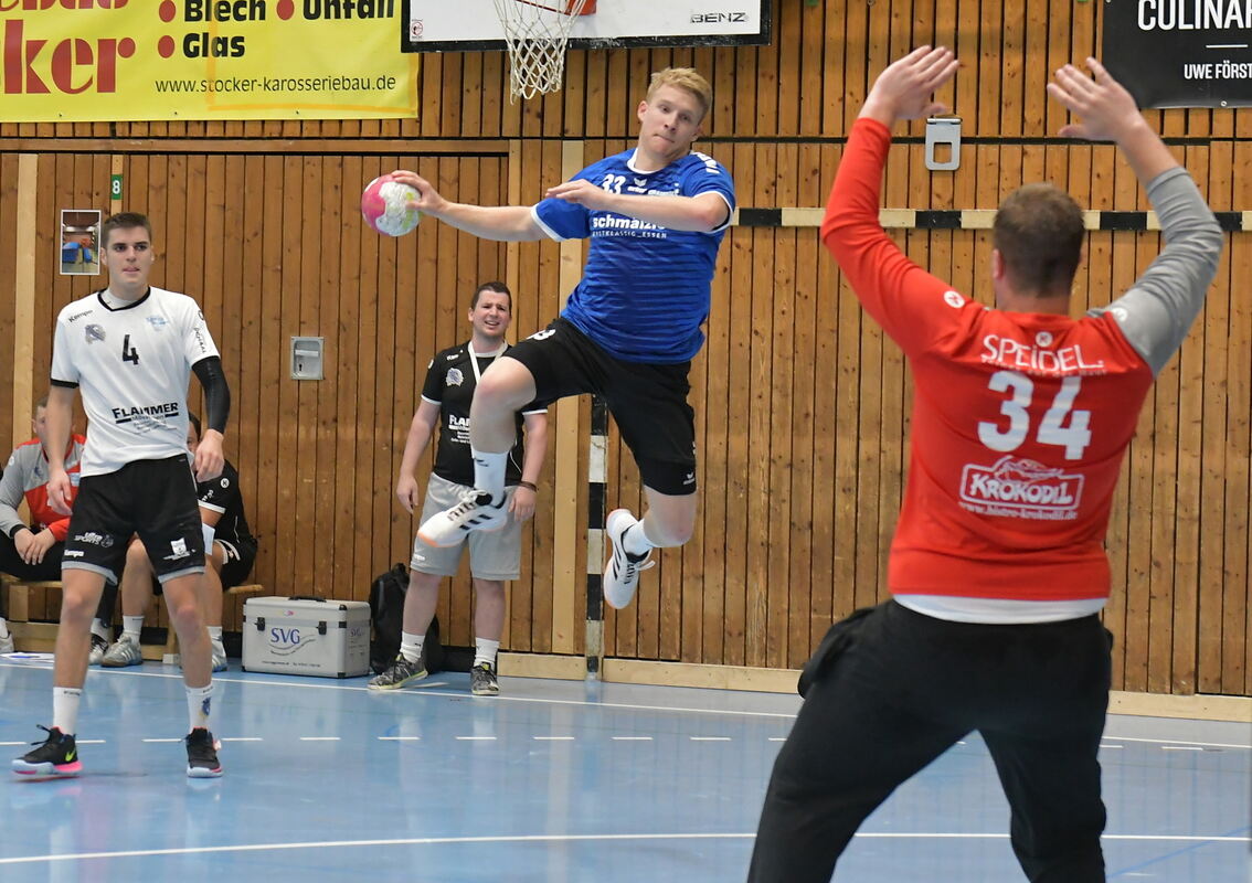 Überzeugte als achtfacher Torschütze: Der Pfullinger Lennard Müller. Rechts: Mössingens Keeper Michael Geiger. Foto: Meyer
