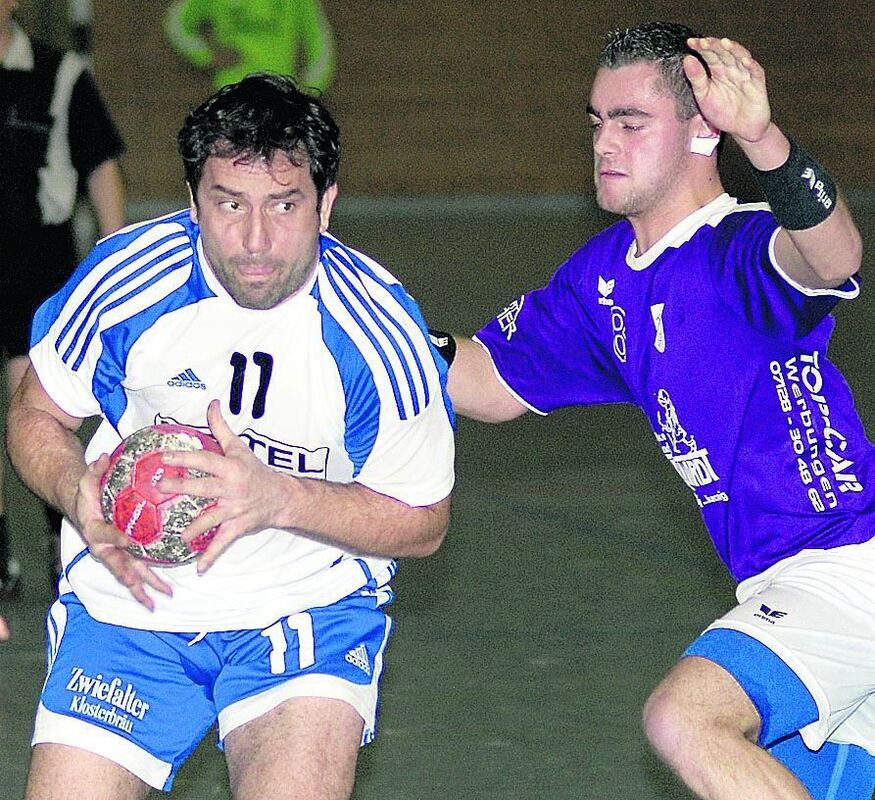 Führte den TSV Betzingen im Derby gegen Großengstingen auf die Siegerstraße: Ralf Schlotterbeck. Rechts: Der Engstinger Kevin Hummel. FOTO: THOMYS